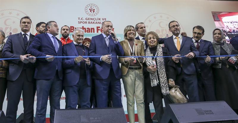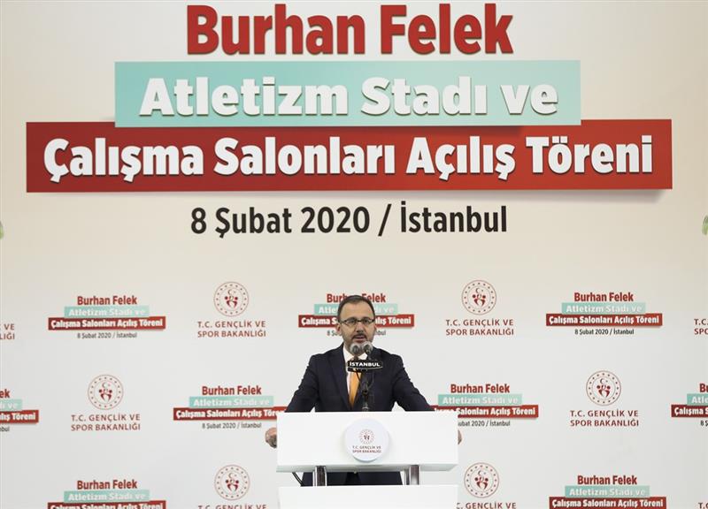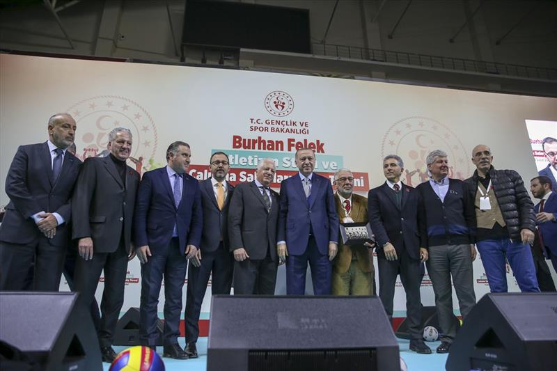 Bir süredir yenileme çalışmaları devam eden ve Türk sporunun sembol tesislerinden olan Burhan Felek'in atletizm stadı ve çalışma salonlarının hizmete açıldığını dile getiren Erdoğan, spor dünyasına hizmetlerde bulunan güzide tesise adı verilen merhum Burhan Felek'i rahmetle andı.