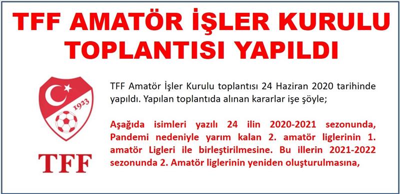 TFF Amatör İşler Kurulu toplantısı 24 Haziran 2020 tarihinde yapıldı. Yapılan toplantıda alınan kararlar işe şöyle;